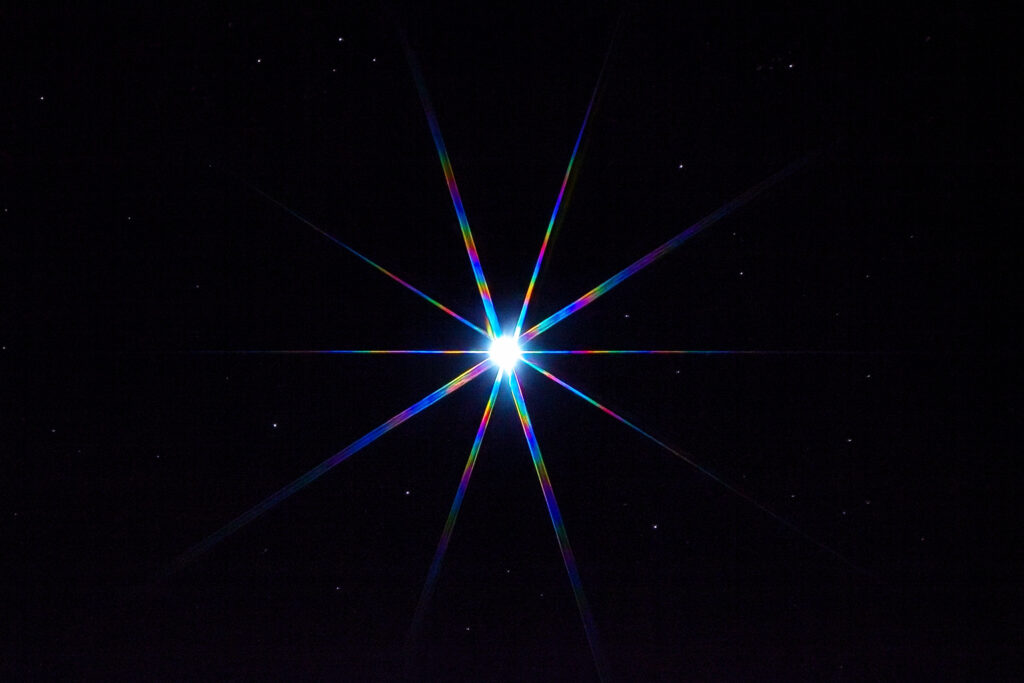 Sobald die Maske montiert ist, richtet man die Kamera auf einen ausreichend hellen Einzelstern im Sichtfeld aus, der als Fokusziel dient. Durch das Schlitzmuster der Maske wird das einfallende Licht gebeugt, wodurch ein unverwechselbares Beugungsmuster auf dem Sensor erzeugt wird. Dieses Muster erscheint als eine Gruppe von drei deutlichen Lichtstrichen, den sogenannten Spikes, die sich gegenseitig kreuzen.