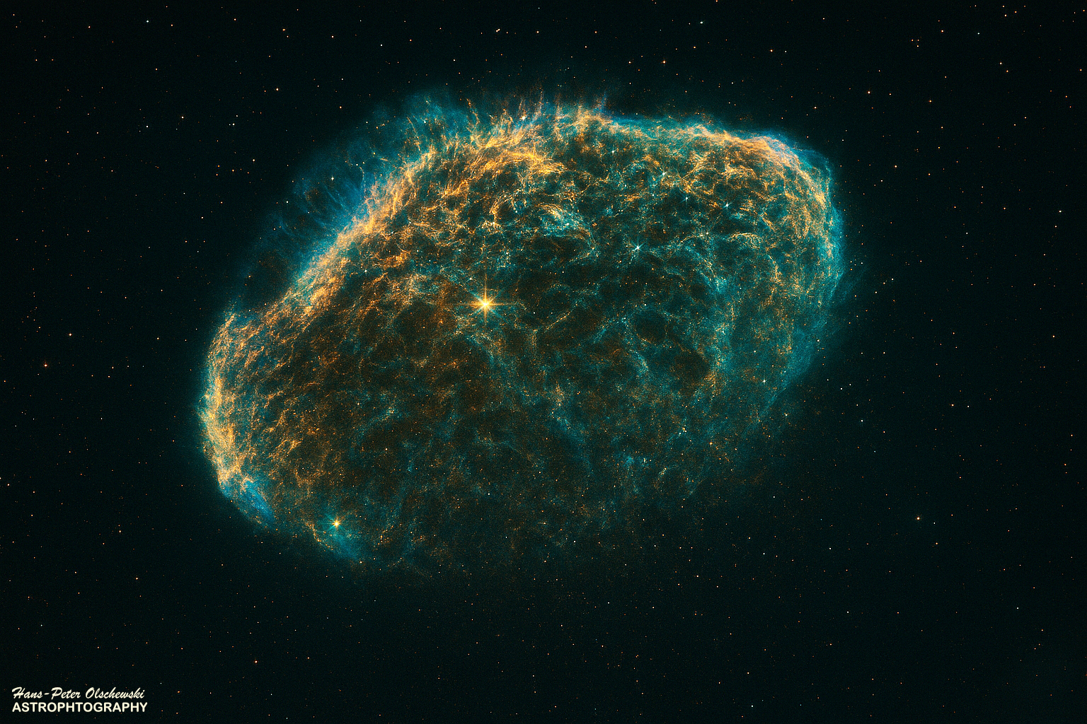 Der Crescent-Nebel ist das Überbleibsel eines massereichen Sterns, der am Ende seines Lebenszyklus stand und in einer Supernova-Explosion endete. Der Nebel selbst ist das Ergebnis der Wechselwirkung zwischen dem starken Sternwind dieses Sterns und dem umgebenden interstellaren Medium. Der Hauptstern im Zentrum des Nebels, ein heißer Wolf-Rayet-Stern, ist für die ionisierende Strahlung verantwortlich, die den Nebel zum Leuchten bringt. Diese Art von Sternen sind extrem heiß und haben eine starke Strahlung, die das Gas in ihrer Umgebung aufheizt und ionisiert.