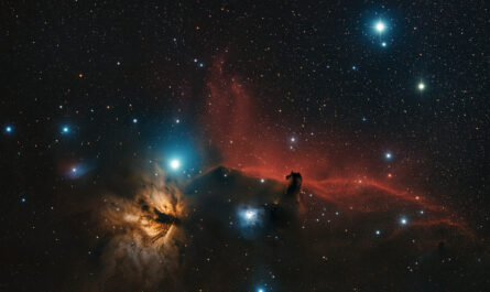 Der Flammennebel, wissenschaftlich katalogisiert als NGC 2024, ist ein beeindruckender Emissionsnebel im Himmelsareal des Sternbilds Orion. Er liegt in unmittelbarer Nähe des berühmten Pferdekopfnebels (B 33) und des linken Gürtelsterns des Orion, Alnitak (ζ Orionis). Astronomisch gehört er zum riesigen Orion-Molekülwolkenkomplex, einem der aktivsten und der Erde nächstgelegenen Gebiete der Sternentstehung. Die Entfernung des Flammennebels zur Erde wird auf etwa 1.500 Lichtjahre geschätzt. Entdeckt wurde er bereits am 1. Januar 1786 von dem Astronomen Friedrich Wilhelm Herschel.